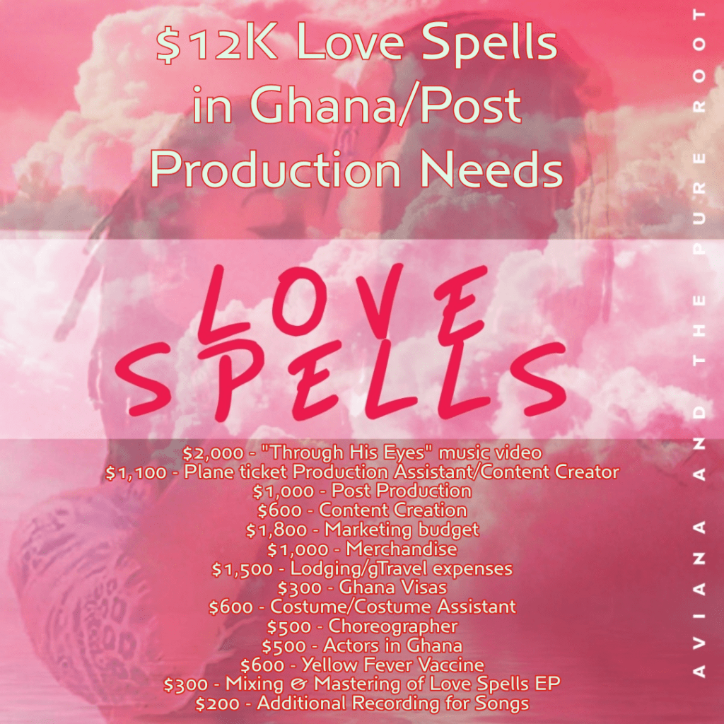 As an artist, it is our deepest desire to see our vision turned into a reality. The one thing missing in most artists’ lives is the funding to create that vision. You can help to bring this vision into a reality by your generous donation to this campaign! This campaign WILL be successful and you get to be part of what helped to make it all happen! Please share this page and spread awareness as much as your heart contents. I am FOREVER GRATEFUL! Follow our social media channels on Instagram @lovespellsfilm and @avianapureroot. We are also on TikTok @avianaandthepureroot and Facebook Love Spells Facebook Page. You can also visit my website at avianapureroot.com.